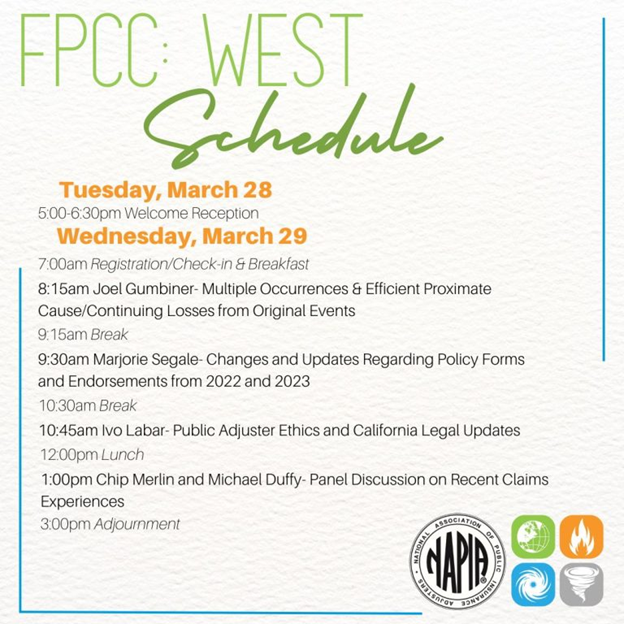 Mike Duffy and yours truly will be speaking at the First Party Claims Conference next week. Our presentation will analyze recent trends in property claims and will focus on the following topics: