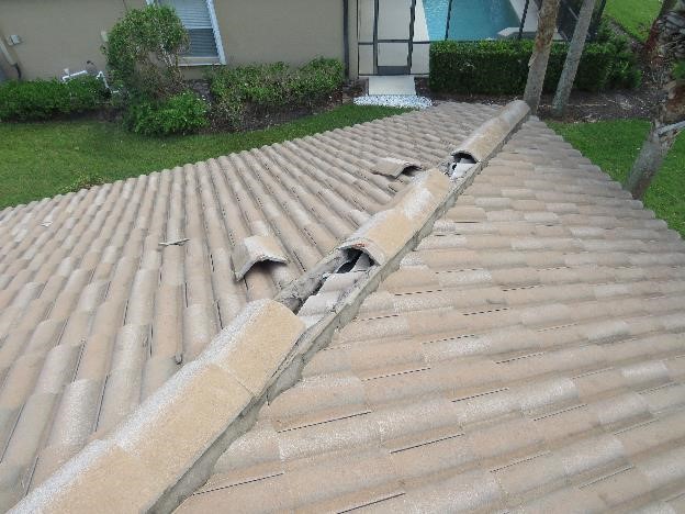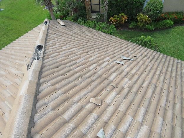 Many are of the belief that when a tile lifts, it will fly off the roof, but see the photos below taken five days after a hurricane hit. The tiles are stuck in an uplifted position! Furthermore, many purported experts believe that when tiles or tile fragments are loose, they will fly off the roof—again, see the photos below to discard this myth.