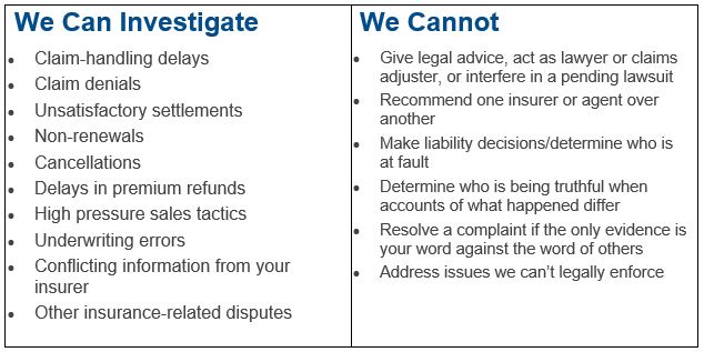 Before filing a complaint, the Division asks that consumers attempt to resolve the dispute with their insurance company first. Then, it asks consumers to review its “How We Can Help” webpage, which includes a useful explanation of insurance rights.1 The Division also welcomes calls and e-mails from insureds in advance of filing a complaint.
