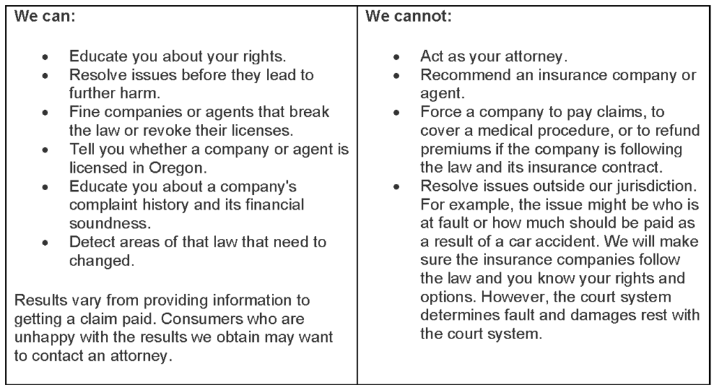 When Oreganians are mistreated by their insurance companies, they can turn to the state government for help. Oregon’s Division of Financial Regulation has the authority to accept and investigate complaints by consumers.
