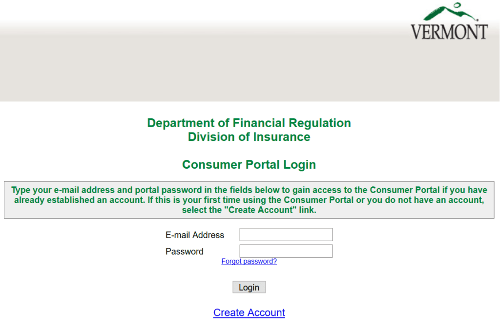Mailing Address: Department of Financial Regulation, Insurance Consumer Services, 89 Main Street, Montpelier, VT 05620-3101