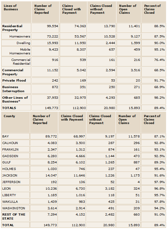 We will continue to monitor the information released by FLOIR and update our blog accordingly with the latest reporting period regarding Hurricane Michael claims.